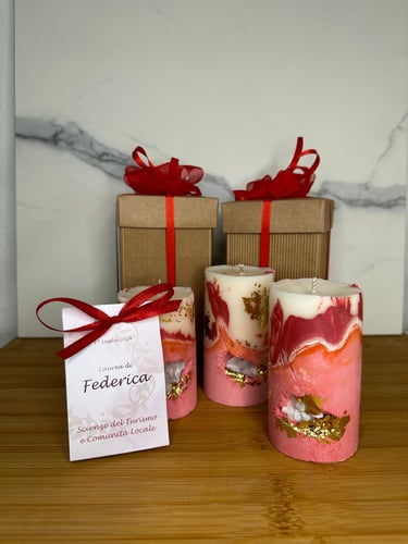 Qui troverai creazioni artigianali uniche che uniscono la bellezza delle candele alla raffinatezza delle bomboniere.