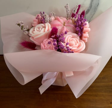Perfetti come regalo o per aggiungere un tocco di classe alla vostra casa, i bouquet di candele di Mamma Cri sono l'espressione più raffinata della nostra creatività.