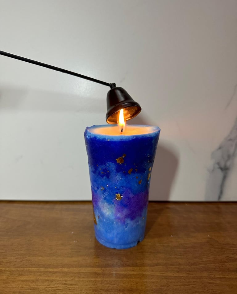 Ci sono degli appositi strumenti per spegnere la candela profumata, o, in alternativa puoi aiutati con una pinzetta immergendo lo stoppino nella cera liquida che si è formata.